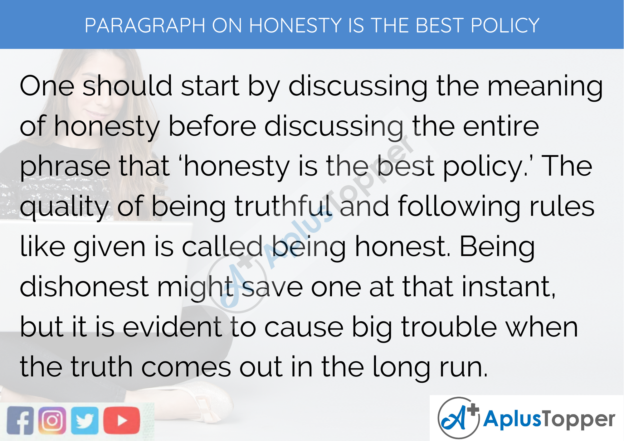 Paragraph On Honesty Is The Best Policy: The phrase ‘honesty is the best policy’ is not something we have discovered recently. Instead, we are familiar with this phrase from ages. Following the advice of the phrase provides an individual with mental peace. If our actions are the result of truthfulness and honesty, then we will never have to face emotions like guilt and the consequences of wrongdoings.