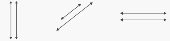 Parallel lines are marked with “feathers” to show that they are parallel.