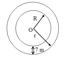 R = Outer radius = r + 7 = (35 + 7) m = 42 m
