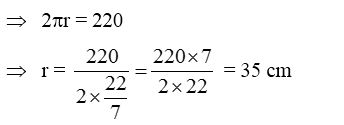 ⇒ 2πr = 220 cm ⇒ 2 × \(\frac { 22 }{ 7 }\) × r = 220