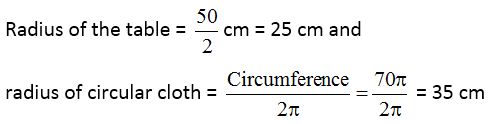 Example 10: A circular table cloth has a circumference of 220 cm.