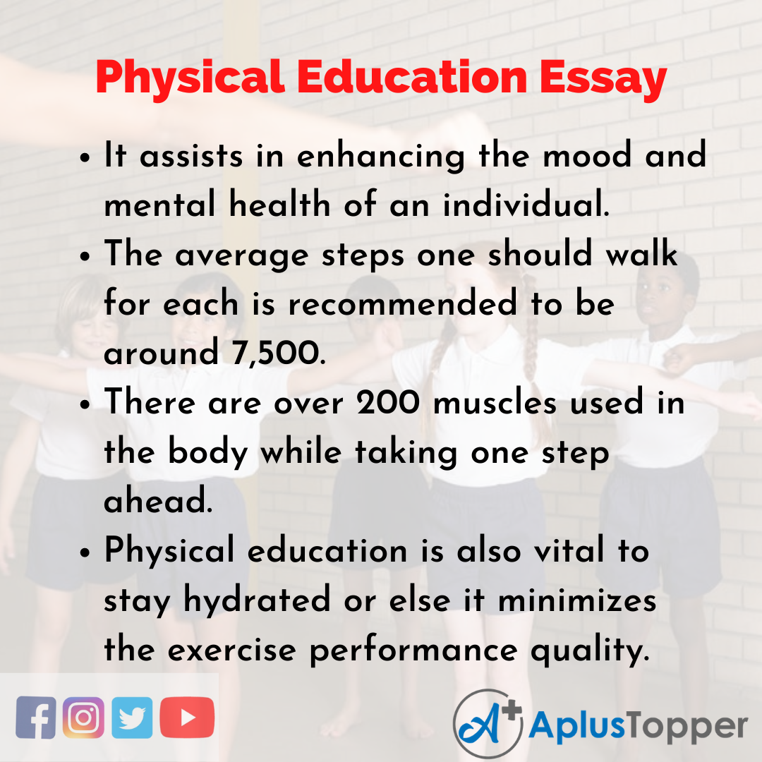 Physical Education Essay: Physical Education has become a compulsory subject across numerous schools across the country and even globally. In recent years physical education has been given utmost importance in several schools and industries. Besides, physical education is also offered as a degree program in many colleges.