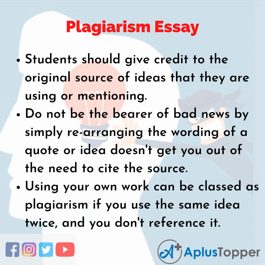 Short Essay on Plagiarism Essay is usually given to classes 1, 2, 3, 4, 5, and 6.
