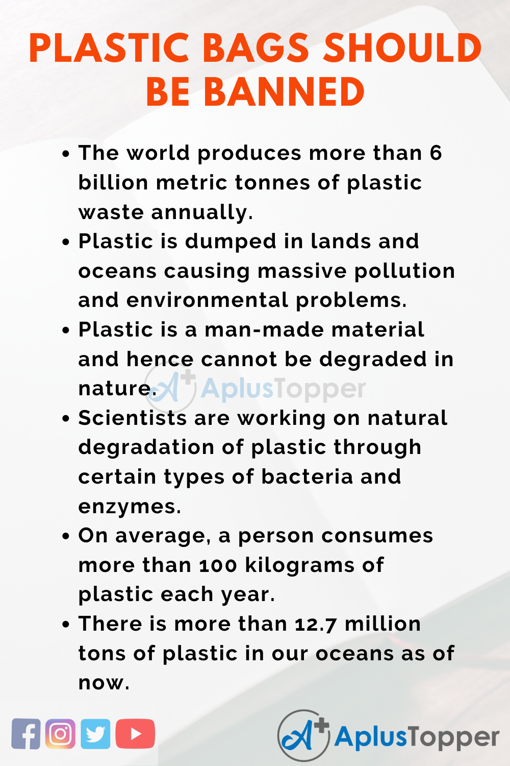 - Banning plastic altogether is not possible because we are heavily dependant on plastic every day.