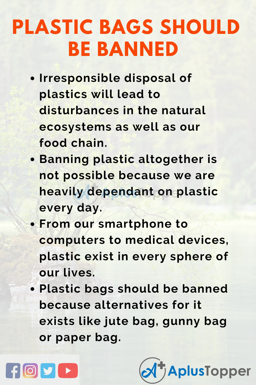 Long and Short Essays on Plastic Bags Should be banned for Students and Kids in English