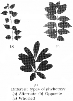It is the arrangement of leaves on the stem or branch Three types of phyllotaxy in plants alternate, opposite and whorled.