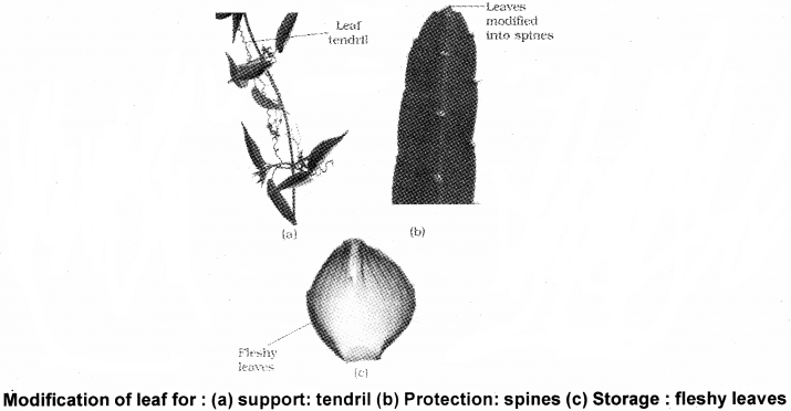 - Insect capture: In pitcher plant and venus-fly trap (insectivorous plants) leaves are modified for Capturing insects.