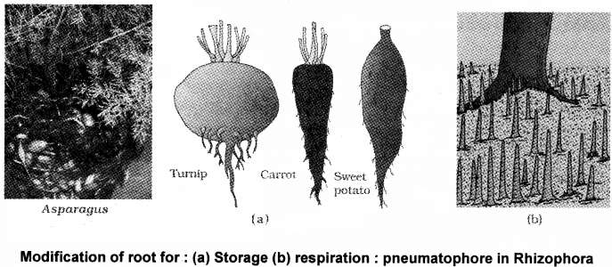 In carrot, turnips tap roots are modified for food storage. In sweet potato adventitious roots are swollen and store food.