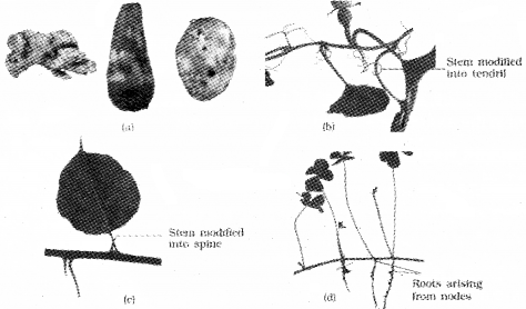 Underground stems of potato, ginger, turmeric, zaminkand, Colocasia are modified to store food