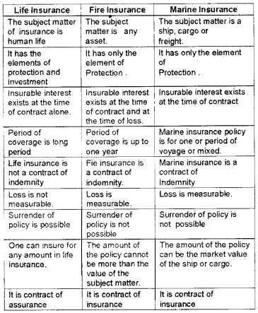 - Types of insurance – Life insurance – Fire insurance – Marine insurance