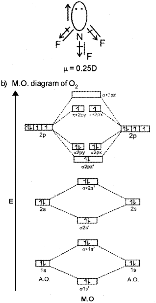 b) Write the electronic configuration of oxygen molecule on the basis of Molecular Orbital Theory. Justify the presence of a double bond in it and account for its paramagnetic character.