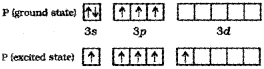 b) The ground state and the excited state outer electronic configurations of phosphorus are,