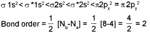 a) Bond order is defined as one half of the difference between the number of electrons present in the bonding and the antibonding orbitals.