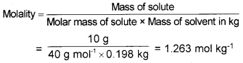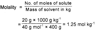 Calculate the molality of a solution of NaOH containing 20g of NaOH in 400 g solvent.