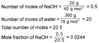 Calculate the mole fraction of NaOH in a solution containing 20 g of NaOH per 360 g of water.