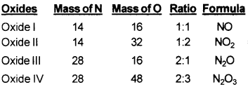 The ratio of masses of oxygen combining with a fixed mass of metal = 3.7 : 1.9 = 2: 1, a simple whole number ratio.