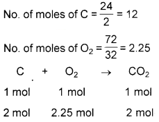 3. Here again, dioxygen is the limiting reactant. Therefore, amount of CO2 produced from 16 g dioxygen = \(\frac{44}{32}\)×16 = 22g