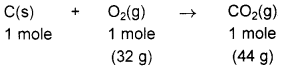12 g of carbon reacts with 32 g of oxygen to form 44g of carbon dioxide.