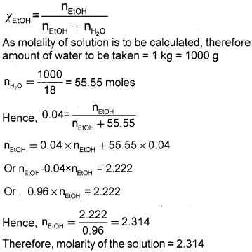 Calculate the molarity of a solution of ethanol in water in which the mole fraction of ethanol is 0.040. (2)
