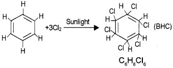 c) When Benzene is allowed to react with chlorine in presence of sunlight. Benzene hexa chloride (BHC) is obtained.