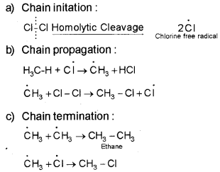 Chlorination of methane takes place through a free radical chain mechanism as given below: