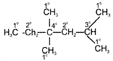 In the alkane, H2CCH2C(CH3)2 CH2CH(CH3)2, identify 1°, 2°, 3° carbon atoms and give the total number of atoms bonded to each one of these.