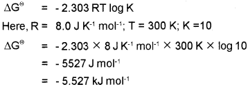 The equilibrium constant for the reaction is 10. Calculate the value of ∆G ; Given R = 8 J K-1 mol-1; T = 300 K.