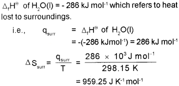 Calculate the entropy change in surroundings when 1.0 mol of HzO (I) is formed under standard conditions. Given ∆fH = – 286 kJ mol-1.