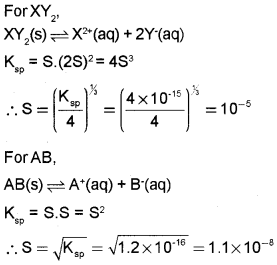 2. The solubility product of two sparingly soluble salts XY2 and AB are 4 × 10-15 and 1.2 × 10-16 respectively. Which salt is more soluble? Explain.