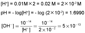 b) Calculate the pH of 0.01 M H2SO4 solution. Also, calculate the hydroxyl ion concentration in the above solution.