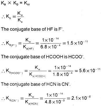 The ionization constants of HF, HCOOH and HCN at 298 K are 6.8 × 10-4, 1.8 × 10-4 and 4.8 × 10-9 respectively. Calculate the ionization constants of the corresponding conjugate base. (3)