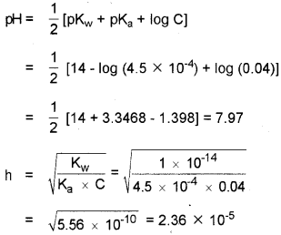 The ionization constant of nitrous acid is 4.5 x 10-4. Calculate the pH of 0.04 M sodium nitrite solution and also its degree of hydrolysis. (2)