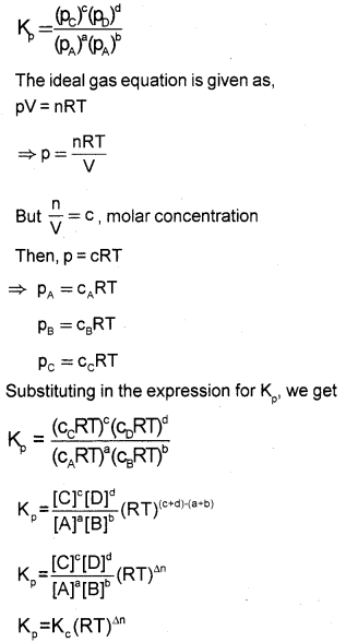Derive the relation between Kp and Kc of a gaseous reversible reaction.