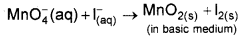 6l–(aq) + 2MnO4–(aq) + 4H2O(l) → 3l2(S) + 2MnO2(s) + 8OH–(aq)