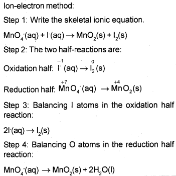 MnO4 –(aq) + 2H2O(l) → MnO2(s) + 2H2O(l) + 4OH–(aq)