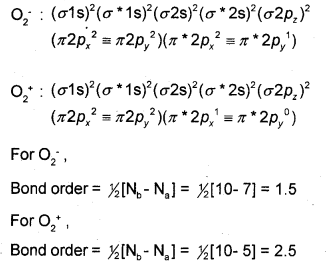 As bond order increases stability increases. Thus, \(\mathrm{O}_{2}^{+}\) with higher value of bond order is more stable than \(\mathrm{O}_{2}^{-}\).