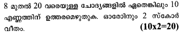 Answer any ten from question numbers 8 to 20. Each carries two scores.