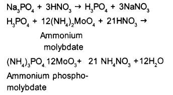 The compound is heated with oxidising reagent (Sodium peroxide). The phosphorous present in the compound is oxidised to phosphate. The solution is boiled with nitric acid and then treated with ammonium molybdate. A yellow colouration or precipitate indicates the presence of phosphorus.