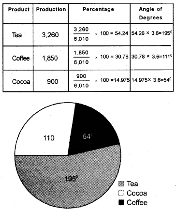 The values of each category are first expressed as percentage of the total value of all the categories. A circle in a pie chart, irrespective of its value of radius, is thought of having 100 equal parts of 3.6° (3607100) each. To find out the angle, the component shall subtend at the centre of the circle, each percentage figure of every component is multiplied by 3.6°.