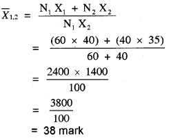 The mean mark of 60 students in section A are 40 and mean mark if 40 student in section B is 35. Calculate the combined mean of all the students.