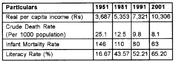 3. Another important achievement in the field of education is rising literacy rate. It was 16.67% in 1951 whereas, the rate increased to 65.2% in 2001. The above table shows India’s achievements in the field of education, health and per capita income since independence. In all these three fields, country made very significant development during the last 50 years.