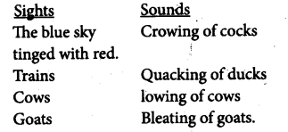 All the noises are easily recognisable. Mention the diverse sounds that reach the travellers’ ears.
