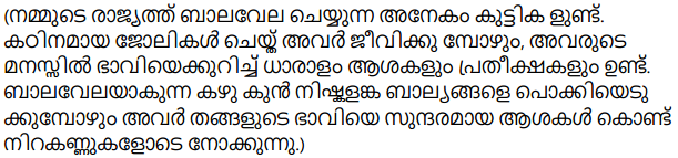 हमारे देश में बालश्रम करनेवाले कई बच्चे हैं। कठिन काम करके जीते समय भी उनके मन में कई प्रतीक्षाएँ रहती हैं। बालश्रम रूपी बाज. निरीह बचपनों को उठाते वक्त भी वे अपना भविष्य सुंदर आशावरी आँखों से देखने को उत्सुक रहते हैं।