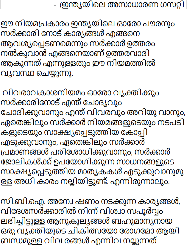 | 4. माँगी गयी सूचना का विवरण | 1. नारी उत्पीडन की रोकधाम के लिए अब तक क्या क्या कारवाईयाँ की गयी हैं? 2. गृह विभाग, केरल सरकार द्वारा नारीउत्पीडन की रोकधाम के संबंध में आमजनता को जानकारी देने के लिए कोई प्रबन्ध किया या नहीं? |