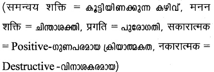 मानव है मनु-पुत्र। उस में असीम शक्ति है। उसकी कल्पना धारवाली होती है। इसमें विचारों के बाण ही नहीं, हाथों में सपनों के तीक्ष्ण तलवार भी रहती है। आर्थात, मानव के सपने और विचार में असीम शक्ति होती है।
