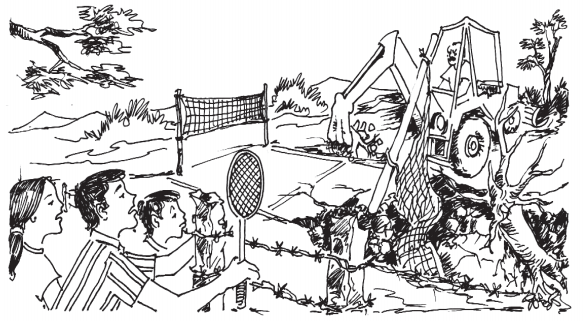 लड़के-लड़कियाँ अपने खेल-खूद, विश्राम आदि के लिए प्रयुक्त पार्क का विनाश देखकर चिंतित हैं। वे शायद यह सोचते होंगे कि ऐसा क्यों हो रहा है, यहाँ पर इसको रोकने के लिए कोई नहीं है आदि… आदि..। पार्क, समुद्र तट, प्रपात, पहाड़ आदि ऐसी सार्वजनिक स्थल हैं, जो आज घटते जा रहे हैं। सार्वजनिक स्थानों के नष्ट होने से मानसिक उल्लास की सुविधा और अवसर कम हो जाते हैं। इससे मनुष्य संघर्ष में पड़ जाता है।