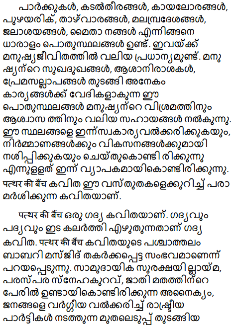 Kerala Plus One Hindi Textbook Answers Unit 3 Chapter 10 पत्थर की बैंच