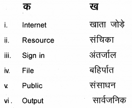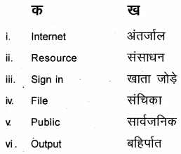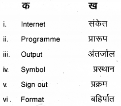 सूचनाः निम्नलिखित 1 से 6 तक के प्रश्नों का उचित हिन्दी शब्द चुनकर मिलान कीजिए।