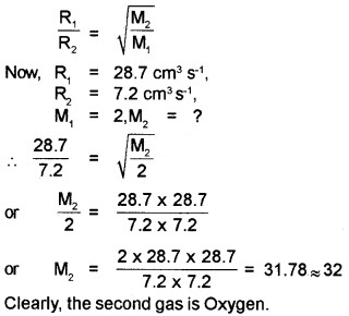 From a certain apparatus, the diffusion rate of hydrogen has an average value of 28.7 cm3s-1. The diffusion of another gas under the same conditions is measured to have an average rate of 7.2 cm3s-1. Identify the gas.
