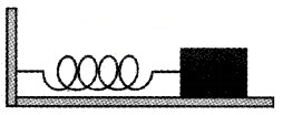 A spring having spring constant 1200Nm-1 is mounted on a horizontal table as shown in the figure. A mass of 3 kg is attached to the free end of the spring. The mass is pulled sideways to a distance of 2.0cm and released.